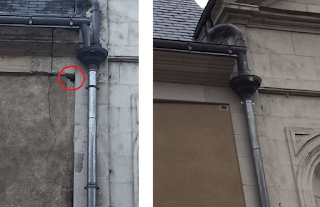 Sos Martinets a travaillé avec les propriétaires de cette jolie maison et le maçon pour trouver un moyen de conserver les sites de nidification sans détériorer la façade. Inspiré des «demi-briques» produites par Action for Swifts, le maçon, l’entreprise Gilles Perriault de Rilly- sur- Loire a réalisé des entrées de martinets à partir dechutes de pierre. Les bords extérieurs ont été arrondis pour éviter tout dommage aux plumes lorsque les martinets reviennent à grande vitesse et les entrées font 30 mm x 65 mm.