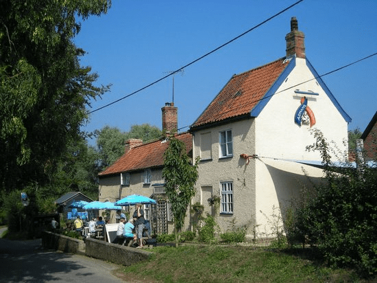 du pub le « Eels Foot Inn » à Eastbridge, Sulfolk, dans l’est de l’Angleterre.