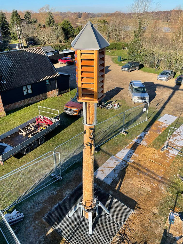 Douglas et sa sculpture, la fixation d’une chambre de nidification et l’enfoncement du poteau de 7